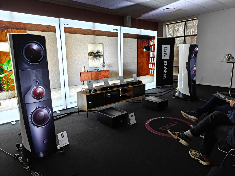 Dali / Hifiklubben var stillet op i stærkeste hold, med både PR chefen og de facto demonstrationschefen til stede for at fremvise Dali Sonik og Dali Cupid - Sonik afløser den ret populære Oberon serie, imens at de små Cupid fremviste nogle ret lækre farver, og i modsætning til mange andre rum hvor den slags ofte er koncepter, så kan man rent faktisk købe højttalere i sennepsgul og blød creme-beige. Det skal nok hjælpe med at få rigtige højttalere ind i nogle flere hjem. Men dagens hovedperson blev hjulpet af et sæt Hegel monoblokke til 270.000, matchende forforstærker og Hegel The Raven DAC, et sæt Dali Kore i satin-hvid finish. Det så virkelig godt ud, og er noget de burde have startet ud med da højttaleren blev lanceret - det klædte den virkelig godt og gør integration ind i et almindeligt hjem noget nemmere, men det gør prisen på 750.000 for et sæt dog ikke, og det samlede setup stod i 1.2 millioner kroner.