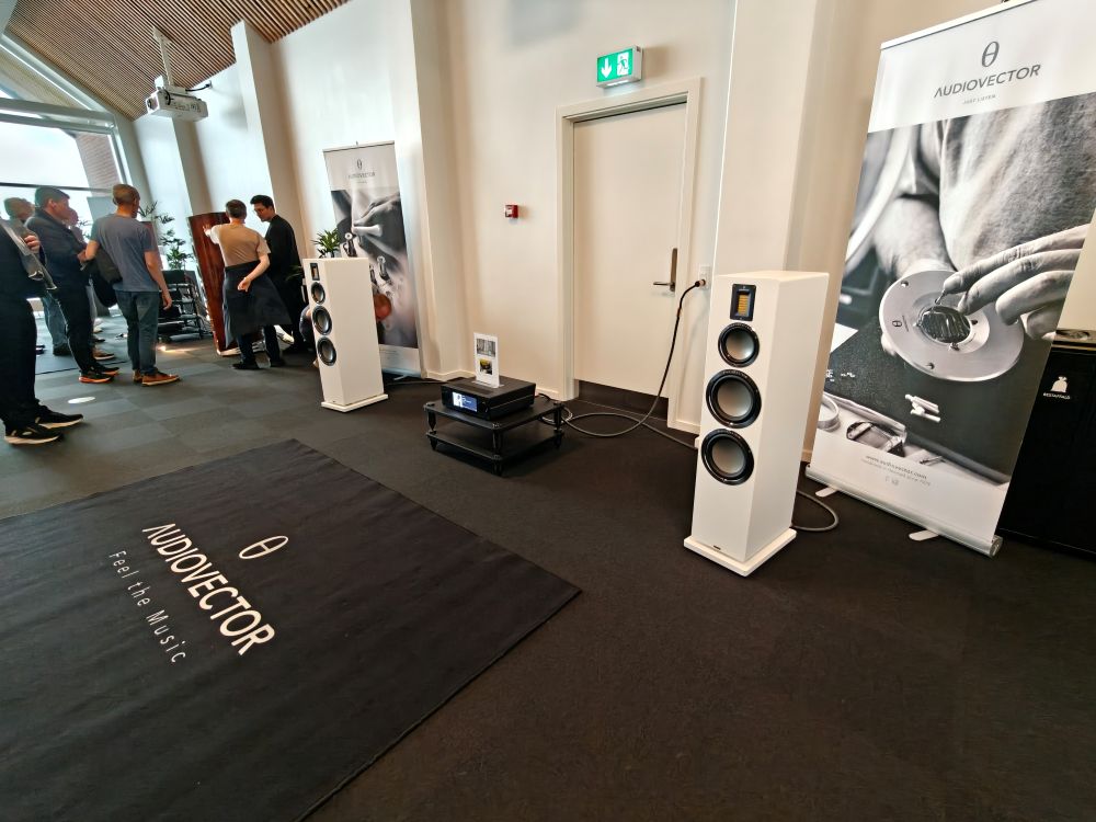 Audiovectorrummet bød på demonstrationer af QR7SE med en integreret Arcam SA45 forstærker på. Audiovector skal så i øvrigt have stor ros for at have klar og tydelig skiltning med produkter og priser. Prisen var dog stadig lige under 90.000 kroner for dette lille setup, småpenge sammenlignet med deres sekundære, eller rettere primære demosetup med den store R10 højttaler til 1.1 million, kombineret med samme forstærkersæt som i JBL rummet, dog med en lidt dyrere afspiller, nemlig en Mark Levinson 519, hvilket gav en systempris på 1.8 millioner med det hele.
