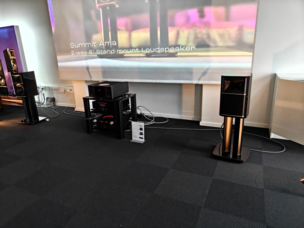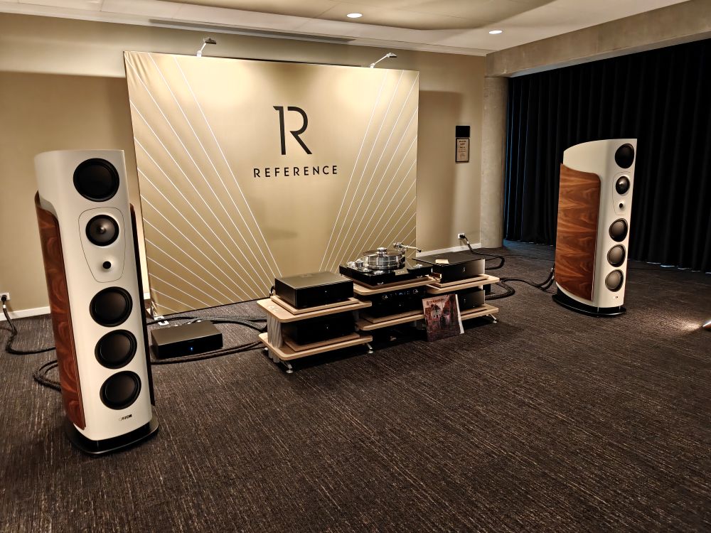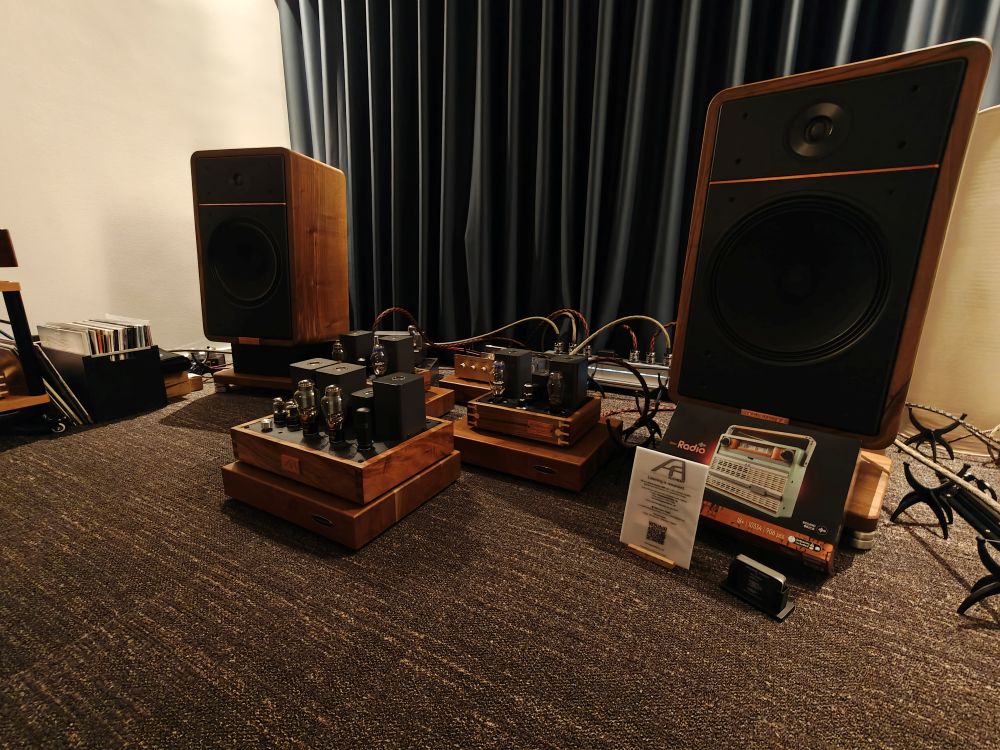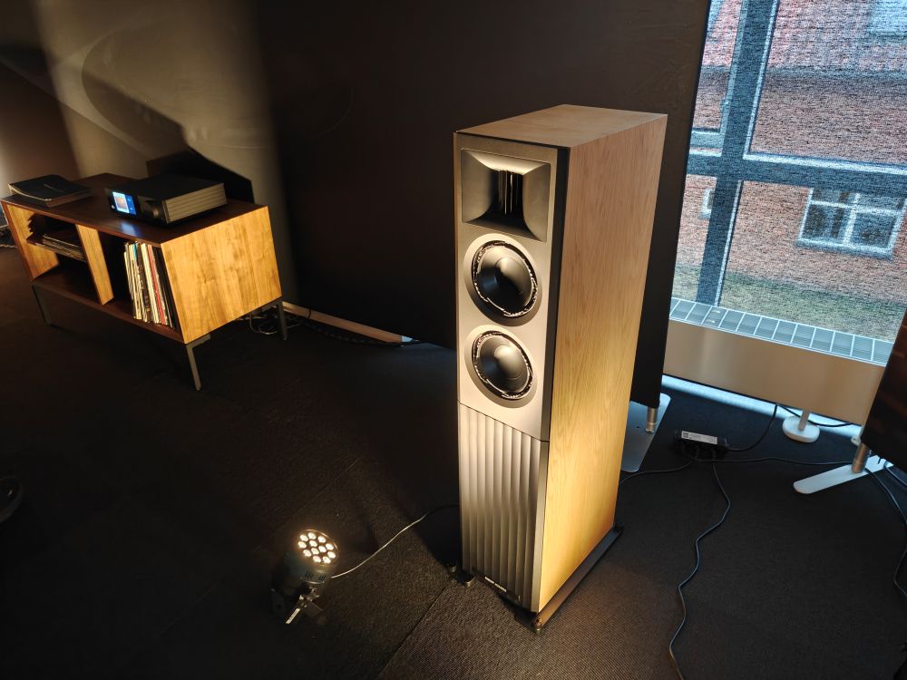 Danske Zikra Audio er egentlig mest kendt for håndbyggede rørforstærkere, men det der absolut tog fokus i det kæmpe rum man debuterede i var et sæt kæmpe hornhøjttalere med et Western Electric 22A horn fra 1928, og en elektromagnetisk driver med en bevægelig masse tæt på ingenting. Et vanvittigt system med en effektivitet på 112 db, og så spillede hele rummet op med bare 0.8 Watt. Manden bag er Michael Zingenberg, en person der næppe forstår konceptet “kompromis”, for det var der intet af i hans rum. Vi snakker speciallavet trafo og pladespiller, håndbyggede rørmonoblokke og matchende forforstærker. Højttalerne er i øvrigt ikke noget der sælges, men Zingenbergs private der var blevet slæbt med. Systemet var sammenlagt 1.7 mio fik vi oplyst, men da hornet alene typisk sælges for 300.000 for et matchende sæt, så er det potentielt langt mere. Lyden var, ja, highend på et lidt andet plan end man så og hørte i de andre rum. Zikra Audio kan heldigvis købes i “almindelig handel” hvis man gerne vil have en RIAA eller rørforstærker udover det sædvanlige.