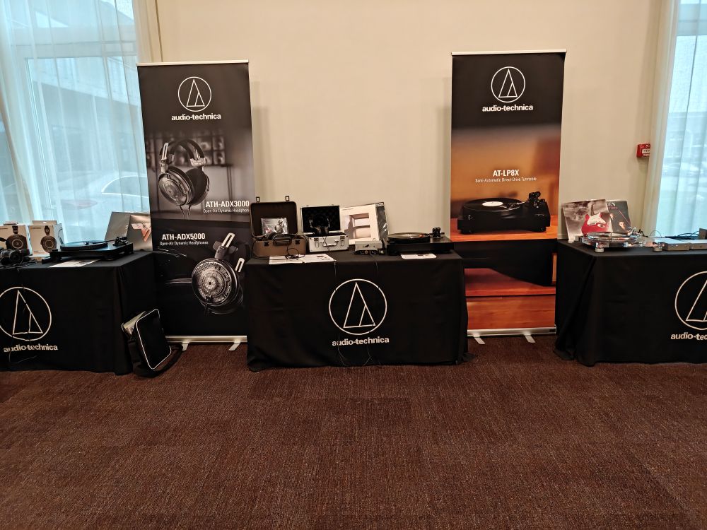 Audio Technica bød på en semi-passiv udstilling i et stort fællesrum med stort fokus på hovedtelefoner og pladespiller. Det var prisværdigt at den nordiske afdeling havde valgt at stille op solo i stedet for at overlade det til en forhandler. Der var særligt fokus på ATH-ADX serien, her taler vi om hovedtelefoner i prisklassen 8-19.000 kroner, her snakker vi hovedtelefoner der er håndsamlet i Japan, og enheder der er Wolfram-belagte. AT-LP8X pladespilleren var der også blevet plads til, en semiautomatisk konstruktion med J-arm og aluminiumspladetallerken - og til en pris omkring 8.500 kroner en af de billigste på messen i år.