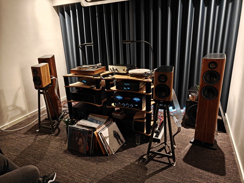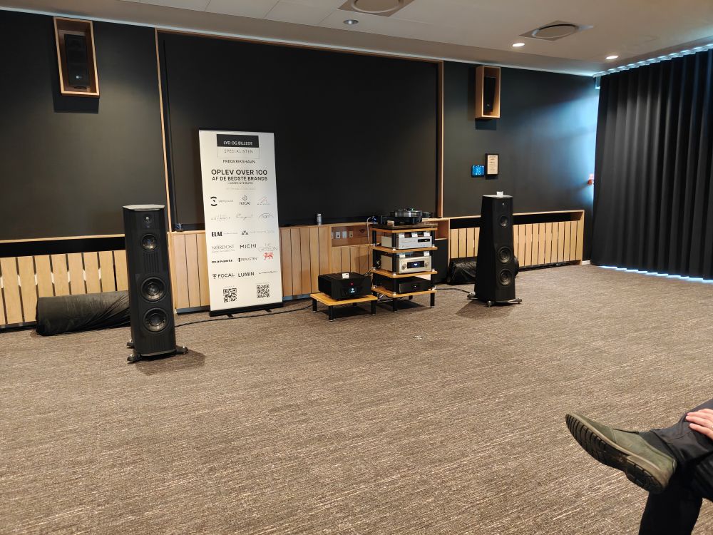 Listen over udstyr brugt hos Audiocompagniet var lang, en hel A4 side faktisk, og de spillede på en del forskellige kombinationer, primært Rotel Michi med Elacs Vela serie i to forskellige prislejer, og så var der forskellige Lumin streamere og pladespillere, naturligvis med kabler fra NordOst. Dyreste kombination stod i omkring 340.000 kroner.