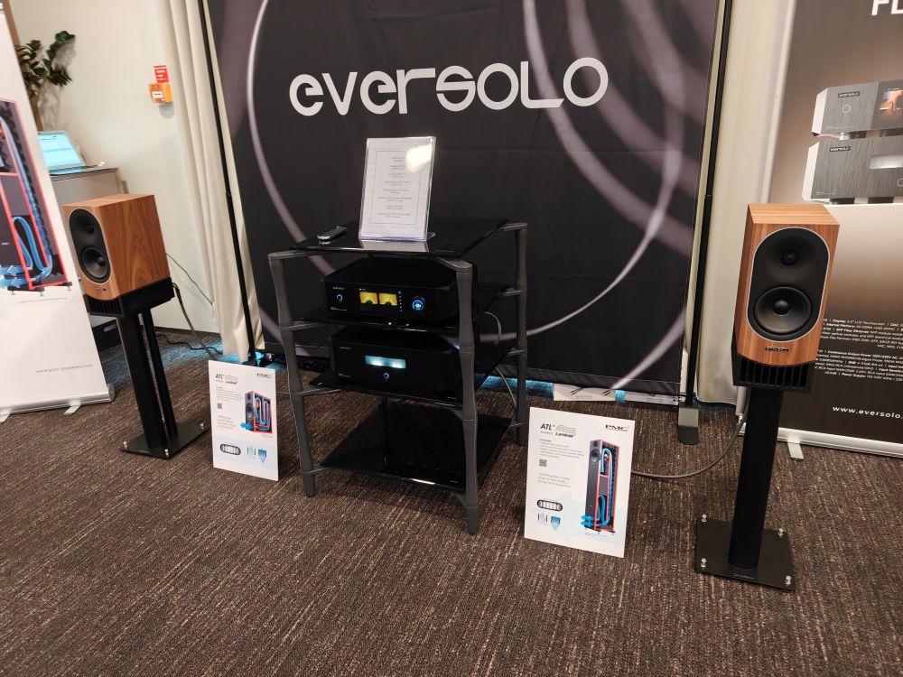 Hos AV Industry havde man et stort udvalg af de mange mærker og produkter som der tilbydes, alt fra oNEST Nordic kabelskjulere til elektronik og højttalere fra Tangent og Sonus Faber. Hovedattraktionen var deres PMC/ Eversolo anlæg, med stander og kabel fra Norstone, hvor Eversolo/PMC delen løb op i 78.000 kroner, og så noget mere rimeligt lå kablerne under 3000 kroner per sæt. Det var sjovt at se de mange Eversolo produkter udstillet på denne måde, for det er godt nok endt med at være et bredt udvalg man har.