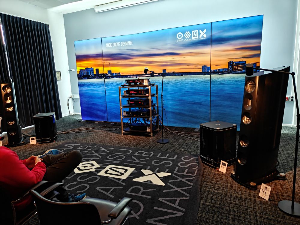 Hos Børresen var der ikke som sædvanligt sparet på noget. Der spillede man C3 højttalere og de nye BM3 subwoofere som man havde to med af, men sådan en kombination koster så også tæt på en halv million. Der blev spillet på Ansuz kabler og Aaviks 588 forstærker og afspiller, og så ramte man hurtigt en million. I det andet rum spillede man på den noget mere prisbillige X3 højttaler til 60.000 for et sæt, men så med en U-188 forstærker/Streamer/DAC til 150.000, en switch til 26.000 samt A3 strømrenser til cirka samme pris.