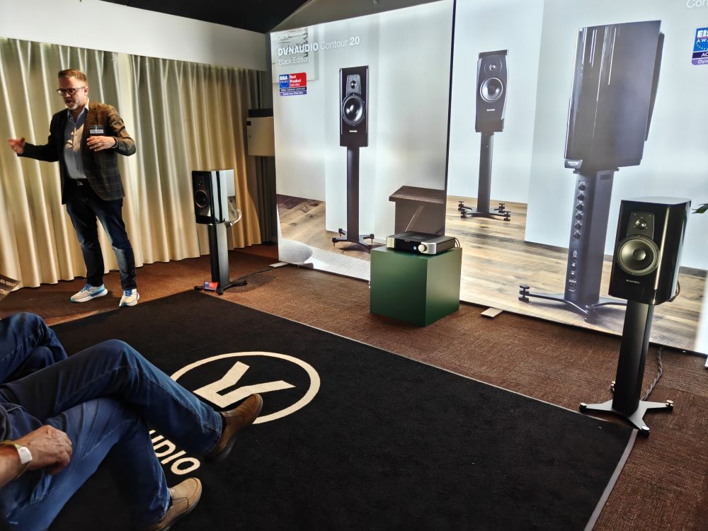 Hos Dynaudio havde man ved hjælp af Moon elektronik til at drive et sæt Contour 20 Black Edition til 52.000 kroner der på trods af sin størrelse ikke havde problemer med at spille rummet op, imens at Otto Jørgensen med vanlig ekspertise og sikker sans for historiefortælling tog tilskuerne med på en særdeles faktadreven rejse udi udviklingen af den nyeste højttaler fra Skanderborg. Dynaudio bør dog booke et større rum næste år, der var alt for mange mennesker til at det var muligt at få noget der bare minder om lidt lyttetid.