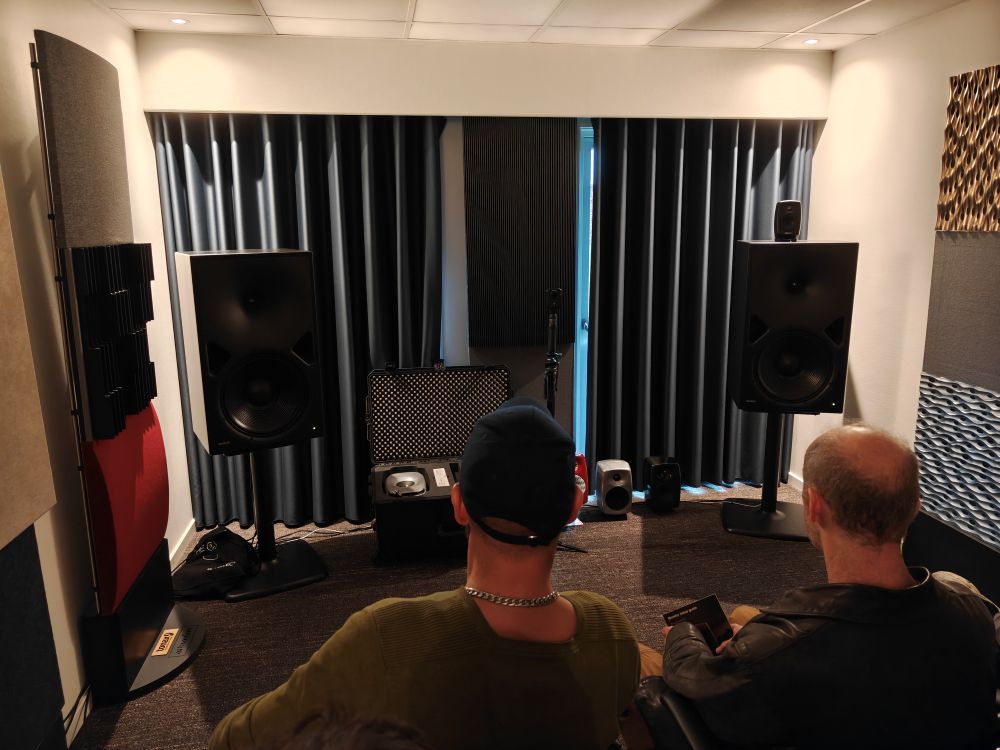 Genelec havde uden tvivl messens største standerhøjttalere, et sæt 8380 med aktiv rumkorrektion. Da de er aktive, var det også messens mest enkle setup, men rummet var der gjort ret meget ud af, og sammen med rumkorrektionen var det et af messens absolut bedste akustisk. Desværre er sådan et professionelt stykke værktøj, for det er det, ikke helt billigt, 140.000 for et sæt for at være mere nøjagtig, men så får du også fornøjelsen af 122dB som referenceniveau.