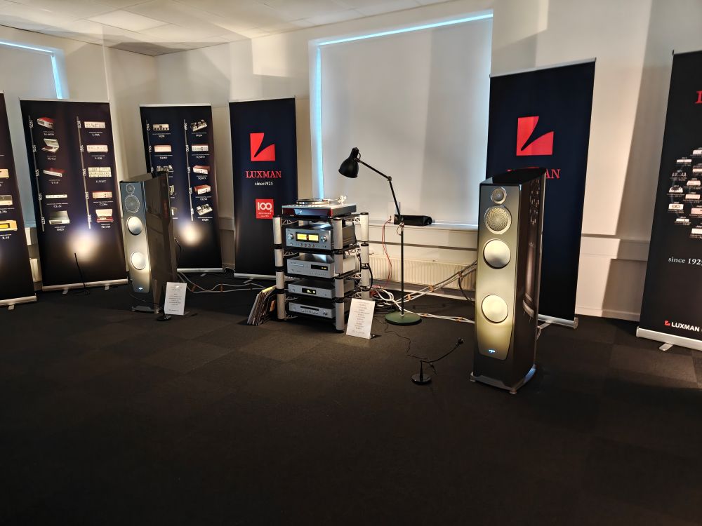 Hos Interceptor Audio / Lydportalen / Hifihuset havde man fået et ret godt rum med plads til luft omkring anlægget, fremvisning af rørforstærkere til den store guldmedalje, men uden at det var en hel sportshal der skulle spilles op. Paradigms Persona 9H, med diskant og mellemtone i beryllium spillede op til dans med et gedigent sæt Luxman elektronik til støtte, inkl pladespilleren PD191A og L100 Centennial, en 100-års jubilæumsforstærker i ren klasse A. Det var naturligvis ikke helt billigt, men med lidt rabat hvis man betaler kontant burde systemet kunne erhverves for under 600.000 kroner. Det var også et glædeligt gensyn med Sonny fra Hifihuset der velfortjent er kendt som en af branchens mest flinke personligheder, og ikke mindst den Luxmans europæiske salgsansvarlige, hun brillierer som altid med sin viden om produkterne og smittende humør.