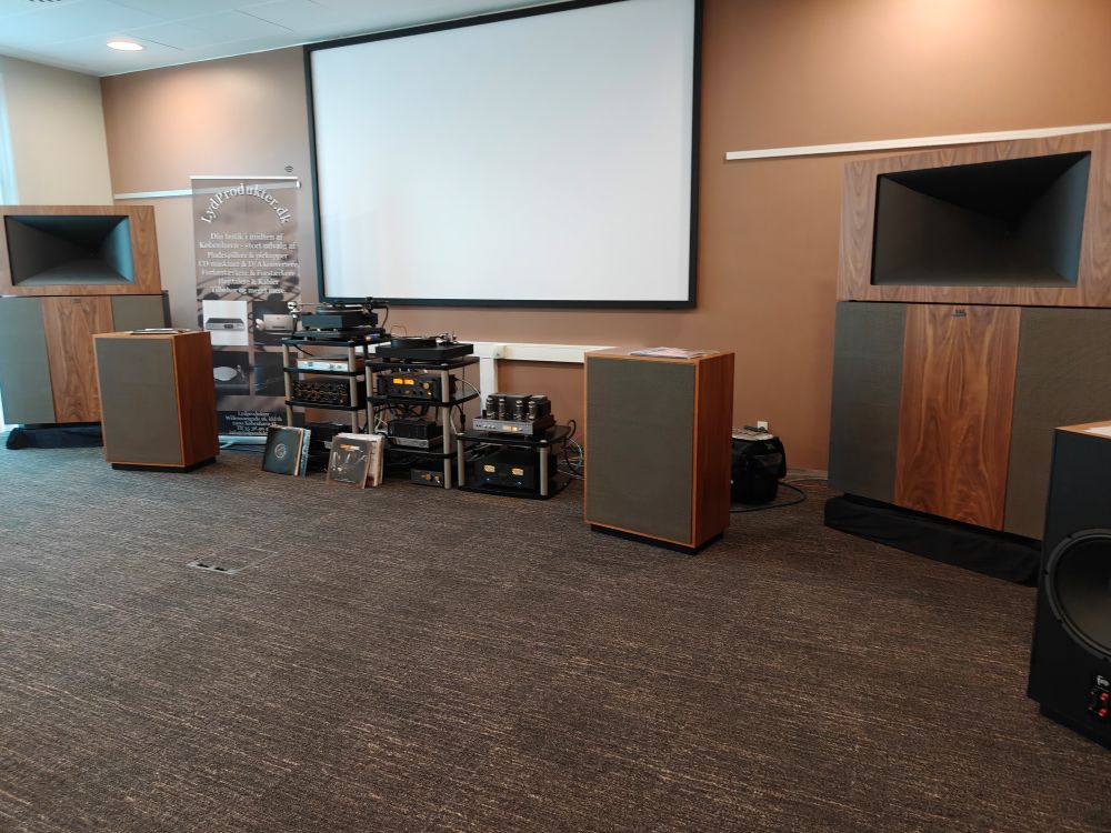 Lydprodukter stod for en af dagens helt store positive overraskelser, og måske de billigste højttalere målt på ren kilopris. De store Klipsch Jubilee kostede nemlig kun 350.000 for et sæt hvor både diskant og bas er hornladet, det giver en bund på 18Hz, og et lydtryk på 125dB. Elektronikken var fra Coda og EAR, med Kuzma pladespillere, og lå omkring 700.000 med kabler. Det lød som om at sættet normalt står i butikken på Østerbro i København, og det må man håbe, for det var en lyd der bør opleves.