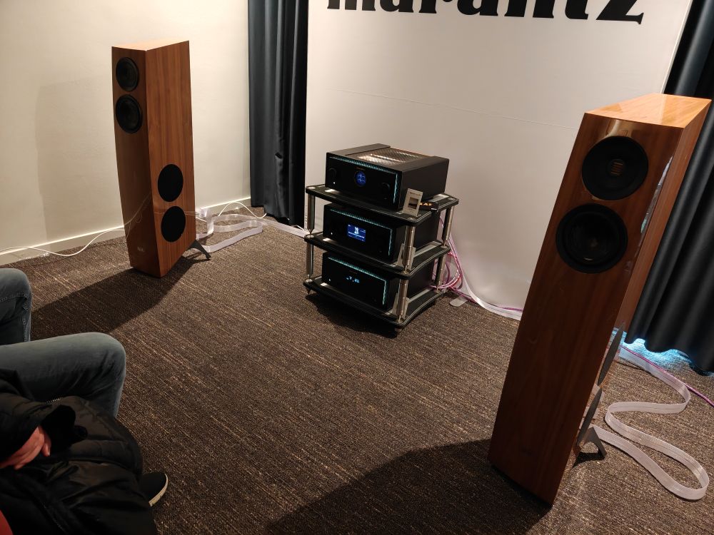 I det andet havde man taget nyeste forstærkere fra Marantz med, en Model 10 forstærker til 115.000 kroner og spillede på Elacs Concerto FS 502 højttalere. Et enkelt, men overraskende velspillende anlæg, og Elac overrasker som altid positivt.