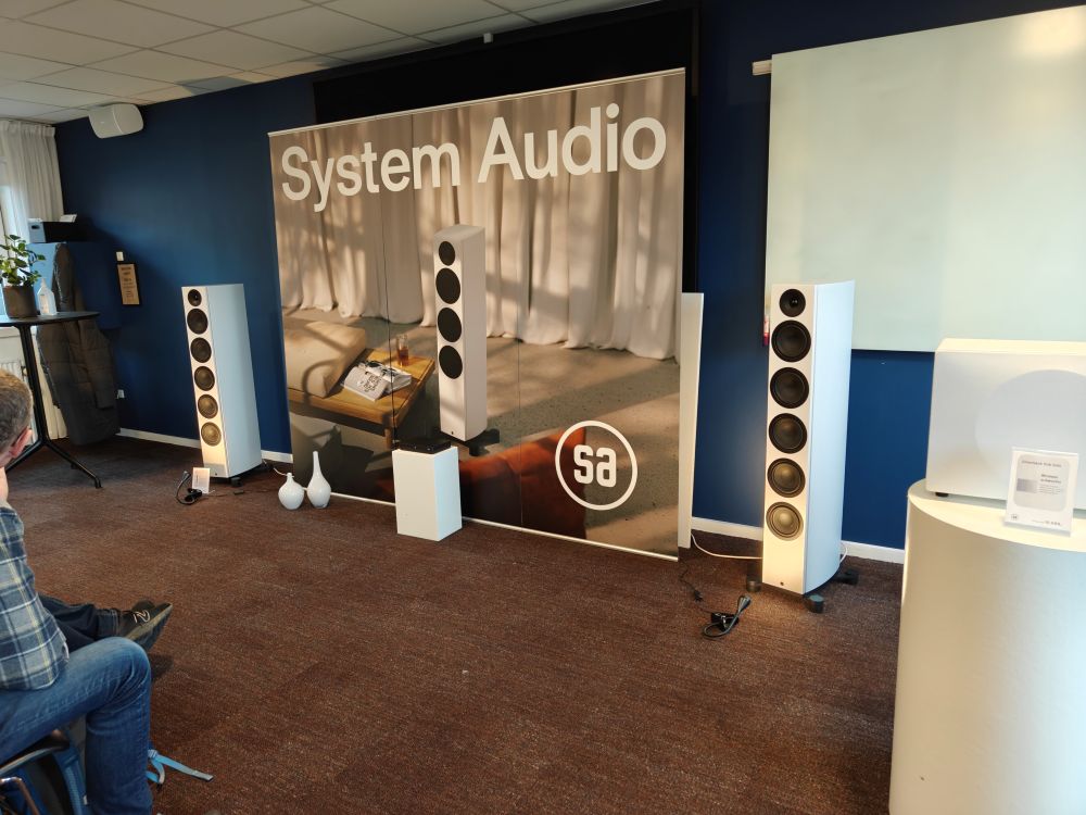 Hos System Audio var det firmaets stifter Ole Witthøft der demonstrerede Legend 60.2 Silverback DS, langt fra en prismæssig gigant med en pris på under 64.000 kroner for et sæt aktive højttalere, men rent teknisk en af de første, og desværre eneste, der bruger den åbne platform Wisa til at transportere lyd i både stereo og surround trådløst. Det er ellers en oplagt mulighed for at slippe for kabler i sit surround setup også. Der bruges egne enheder hele vejen igennem og den trådløse standard understøtter 24 bit lyd, og kan naturligvis bruges med firmaets ditto trådløse subwoofer og øvrige højttalere.