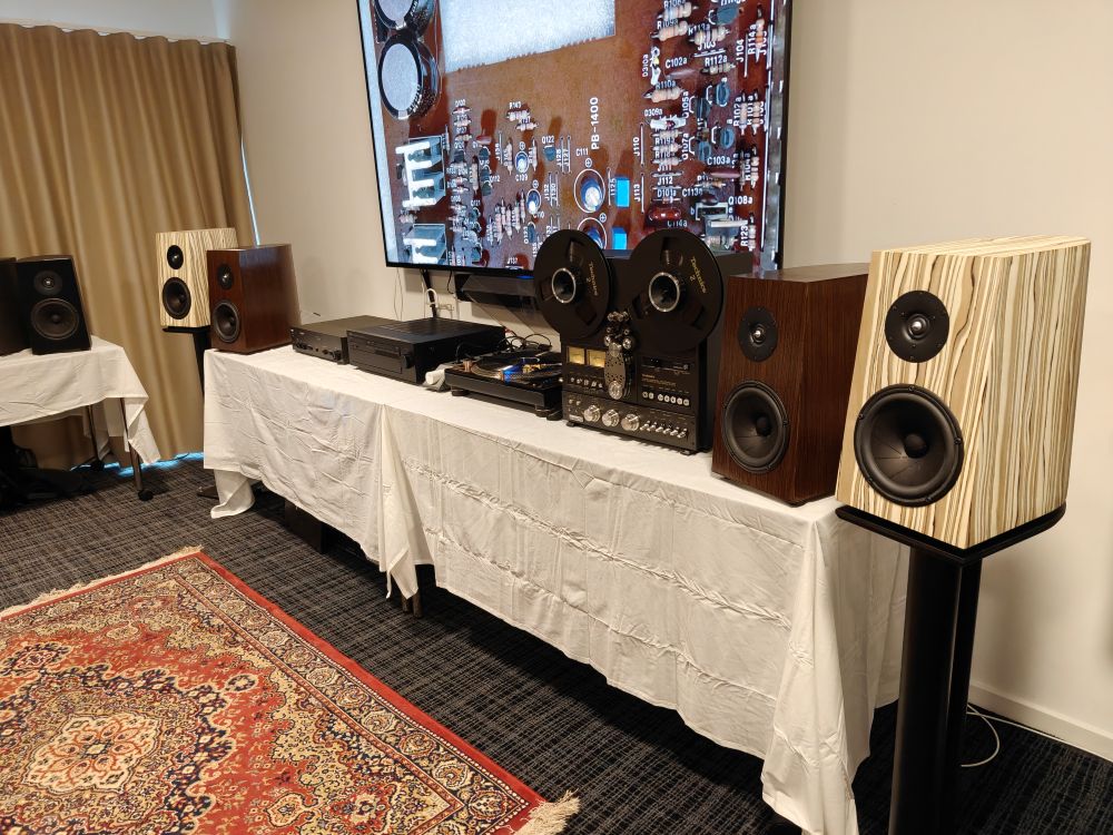 Inde hos SB Acoustics havde man et lidt sjovt rum, men i modsætning til en del andre havde man dimensioneret sine produkter efter det. De fremviste ikke bare deres nye enheder, men også flere af deres færdige kit, inklusiv den nye trevejs Gema der er lavet som en klassisk 70’er gulvmodel, og deres Micro-C der - inklusiv færdigbyggede kabinetter - koster 4.200 kroner for et sæt. Kan man selv lave kabinetterne er prisen naturligvis en helt anden. Lyden var ren og klar, og det var dejligt at se hvordan at byg-selv stadig trives på et niveau hvor det giver mening for producenterne at komme til messe.