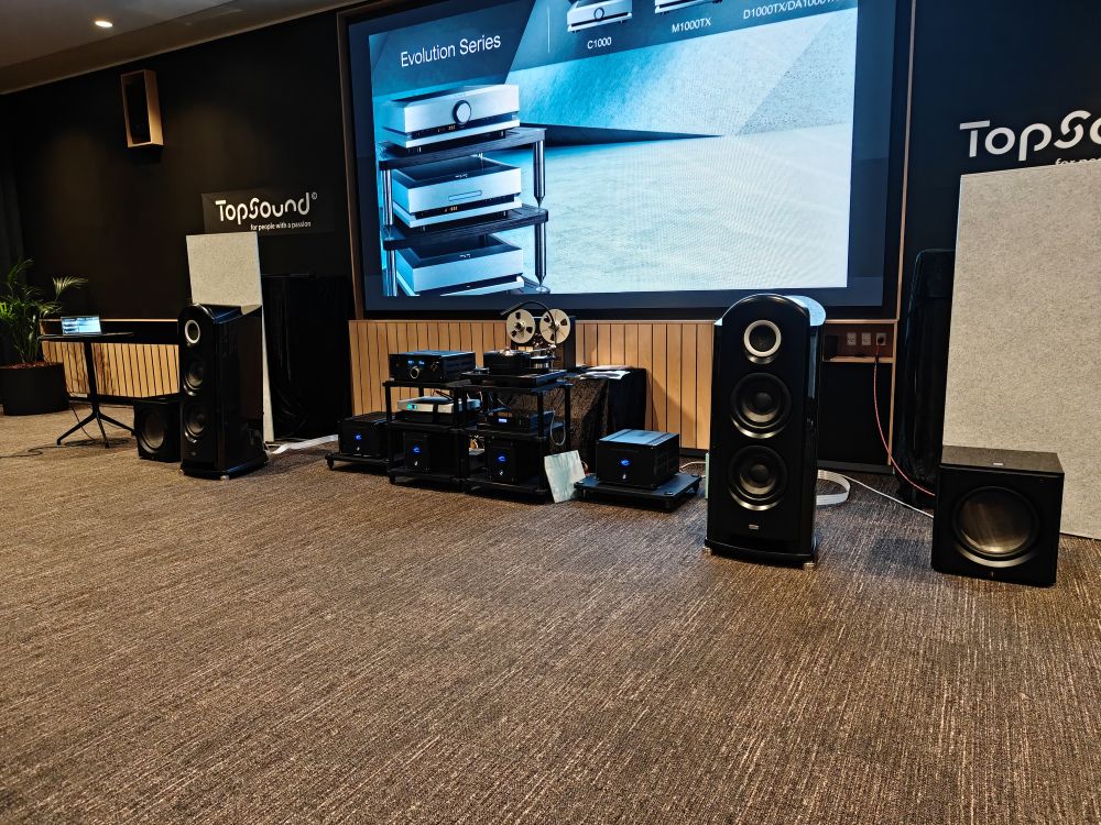 Sidst men ikke mindst havde TopSound snuppet et særdeles stort rum. Det var af den enkelte årsag at de skulle fejre og fremvise deres agentur på TAD, og det lignede også kraftigt at mindst en TAD repræsentant var til stede, noget de er ganske kendt for. Det var voldsomt på flere måder med et sæt TAD Reference One, fire monoblokke fra Electrocompagniet, deres EC5, Lumin X-2 streamer og komplet Brinkmann pladespiller setup. Samlet set var der for omkring 2.4 millioner kroner, men så var der også to Perlisten subwoofere og NordOst kabler med i købet.